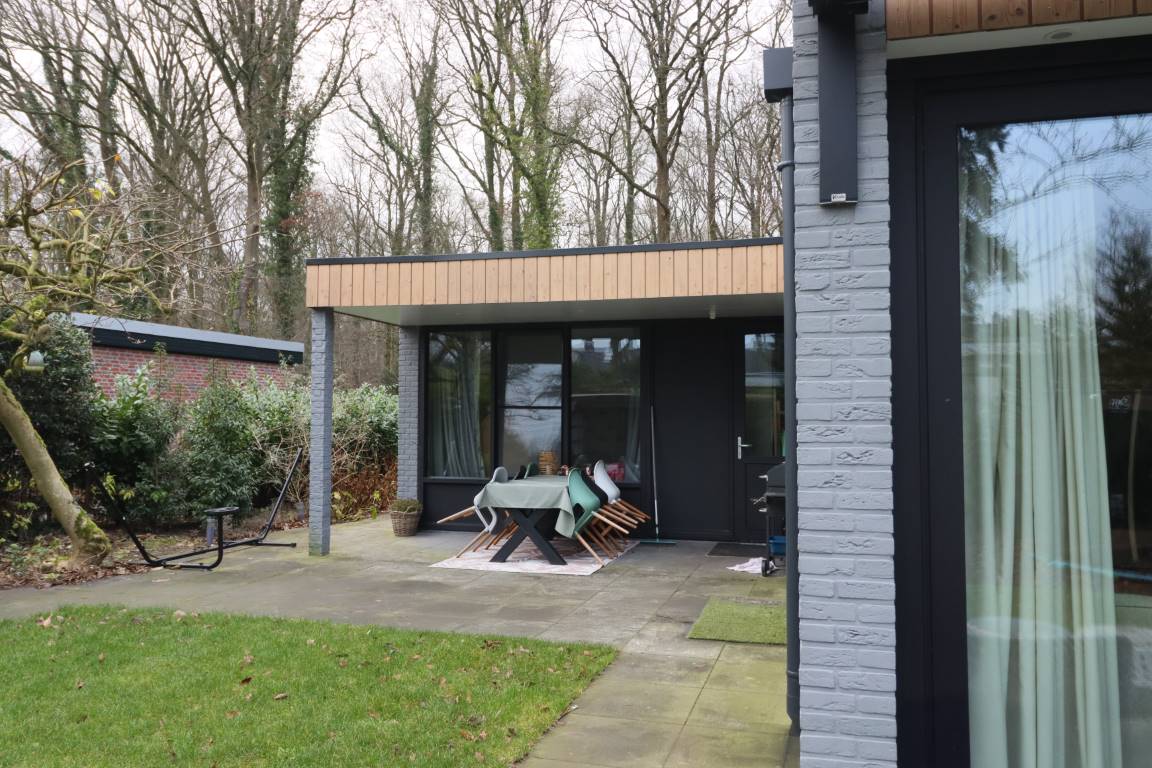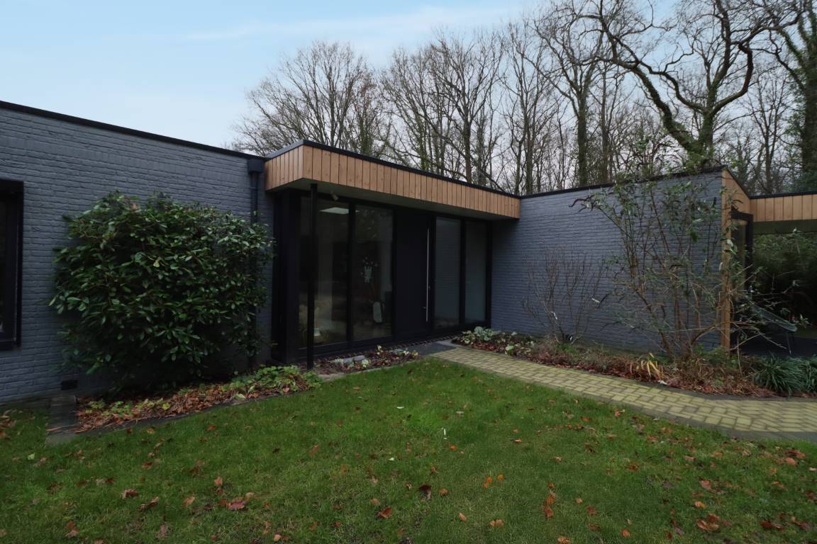 Deze vernieuwde woning maakt optimaal gebruik van licht, ruimte en zichtlijnen. De natuurlijke materialen zorgen voor een warme uitstraling en een subtiele inpassing in het groene landschap, terwijl het ontwerp tegelijkertijd een duidelijke, moderne signatuur draagt.