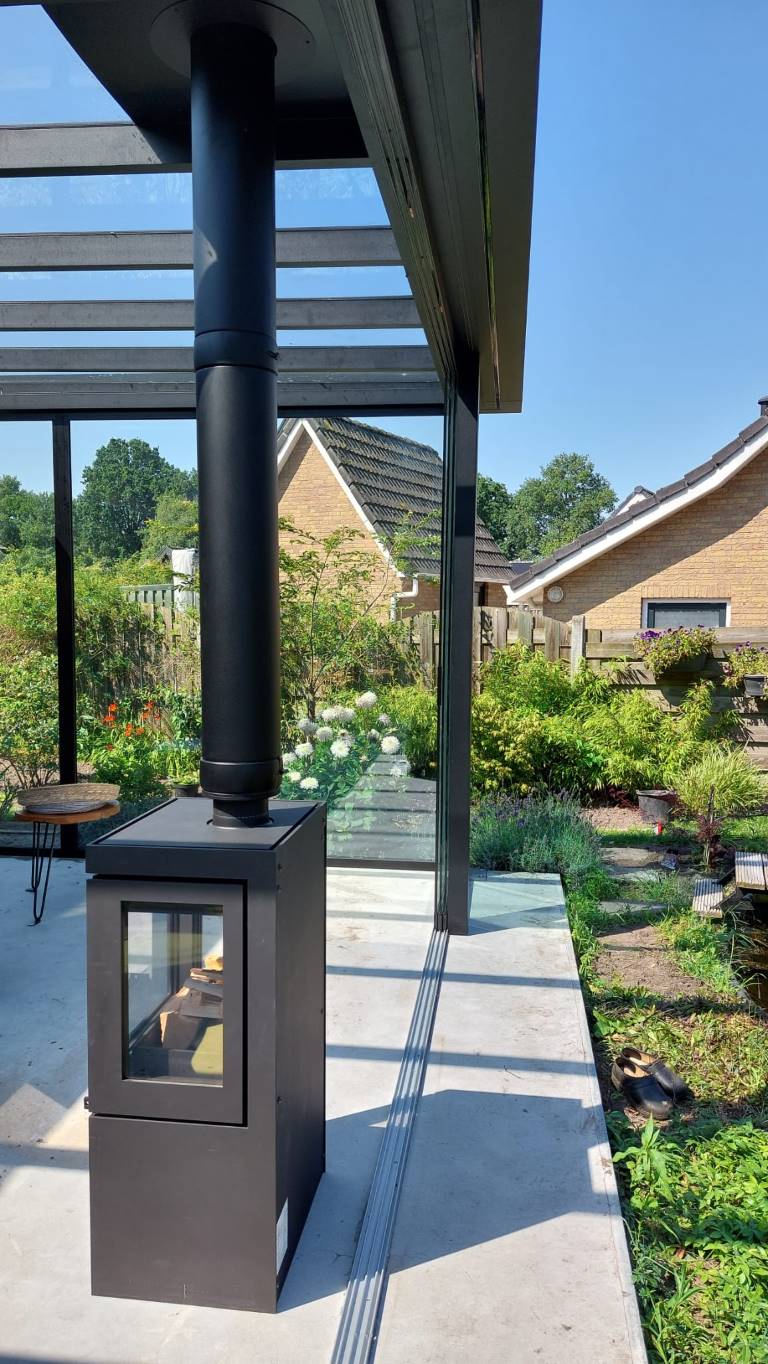 Tuinkamer met houtkachel